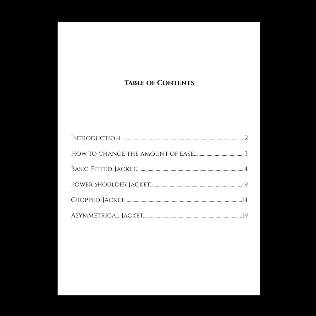 This Patternmaking Guide is classified as "Advanced" in difficulty. It's suitable for people who are already familiar with patternmaking and have drafted, for example, the basic bodice pattern before. It's a challenge to draft and sew jackets.